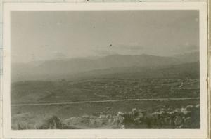 B/W photograph on mount board showing the actual state of the Grave Circle and Royal Shaft Graves photographed from the north. On the ridge beyond can be seen the entrance to the "Treasury of Atreus". The plain and citadel of Argos lie in the distance. This item was used for the 1936 Exhibition and so is also cross-referenced as follows: 1936 Exhibition Collection: 1936 EXH - 103