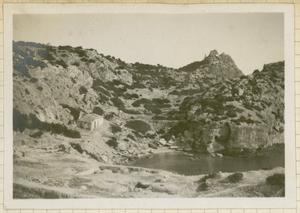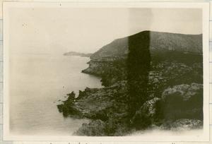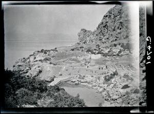 Part of the collection of images, 1930-1939, of the British School at Athens excavations at Perachora, Corinthia. The original description in the SPHS register reads "Perachora: harbour and site of temple."