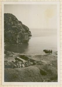 Photograph taken by James Hilary Sheffield Waddington or Mary Chubb. John and Hilda Pendlebury not present. Includes 2 people standing by the harbour.