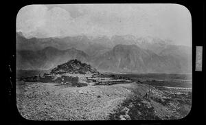 Part of the collection of images, 1906-1910, of the British School at Athens excavations at Sparta, Laconia. The original description in the SPHS register reads: "Sparta: the Menelaeum distant view".