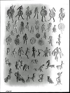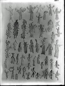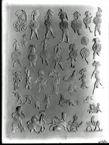 Part of the collection of images, 1906-1910, of the British School at Athens excavations at Sparta, Laconia. The original description in the SPHS register reads: "Sparta: lead figurines, Menelaion, BSA XV pl.7".