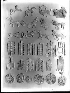 Part of the collection of images, 1906-1910, of the British School at Athens excavations at Sparta, Laconia. The original description in the SPHS register reads: "Sparta: lead figurines, Menelaion, BSA XV p.136".