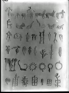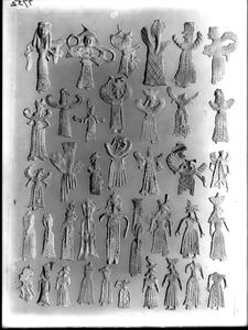 Part of the collection of images, 1906-1910, of the British School at Athens excavations at Sparta, Laconia. The original description in the SPHS register reads: "Sparta: lead figurines, Menelaion, BSA XV p.140".