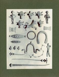 Part of the collection of images, 1906-1910, of the British School at Athens excavations at Sparta, Laconia. The original description in the SPHS register reads: "Sparta: miscellaneous bronze objects".