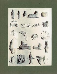 Part of the collection of images, 1906-1910, of the British School at Athens excavations at Sparta, Laconia. The original description in the SPHS register reads: "Sparta: lead figurines, Menelaion, BSA XV pl.7".