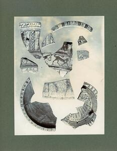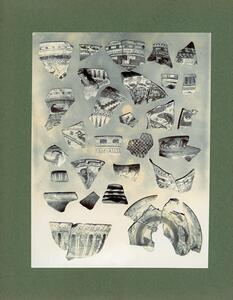Part of the collection of images, 1906-1910, of the British School at Athens excavations at Sparta, Laconia. The original description in the SPHS register reads: "Sparta: vases, Laconian II fragments from Menelaion, Orthia fig 50, p. 79".