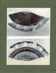 Part of the collection of images, 1906-1910, of the British School at Athens excavations at Sparta, Laconia. The original description in the SPHS register reads: "Sparta: vases, Menelaion, Lac. II bowl (B.S.A.xv)".