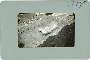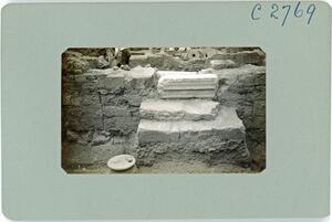 Part of the collection of images, 1924-1927, of the British School at Athens excavations at Sparta, Laconia. The original description in the SPHS register reads: "Sparta 1924, Theatre. Statue base of Lucius Caesar".