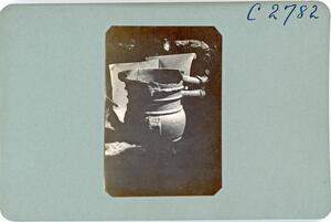 Part of the collection of images, 1924-1927, of the British School at Athens excavations at Sparta, Laconia. The original description in the SPHS register reads: "Sparta 1926, Theatre. Archaic Pithos as found (cf. C 2724)".
