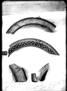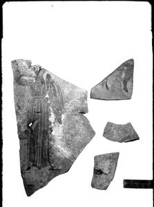 Part of the collection of images, 1924-1927, of the British School at Athens excavations at Sparta, Laconia. The original description in the SPHS register reads: "Sparta 1924-27, Acropolis. Pottery, Laconian (?) Pseudo-Panathenaic Amphora frags.".