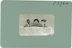 Part of the collection of images, 1906-1910 and 1924-1927, of the British School at Athens excavations at Sparta, Laconia. The original description in the SPHS register reads: "Sparta, (various years' digs). Bronze. breast plate & 2 vase-handles".