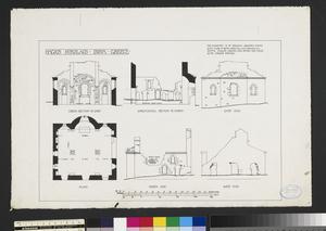 Ink drawing of restoration of the Monastery of our Lady at Isova. The drawing is labelled in pencil: 'The Monastery of Our Lady of Isova. Restored Sketch'.