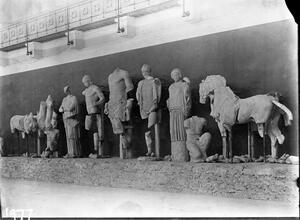 The original description in the SPHS register reads: "Olympia: museum, view of West ped. Sculptures from the Olympieon".
