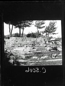 The original description in the SPHS collection reads: "Olympia: Metroon and steps of treasury terrace".