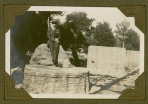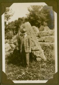 Photograph of “R. Wason” standing by a capital of a column, Olympia