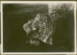 [PEN/2/3/181], Photograph of Hilda White and a tortoise at Olympia, [25 Apr 1928]