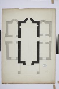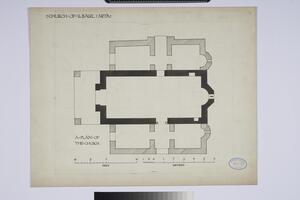 A preliminiary drawing that was entitled: 'Church of Basil Arta' but has been crossed out and corrected in pencil: 'Arta Church of S. Basil'. The drawing is labelled in ink: 'A Plan of the Church'. The front is the ground plan of the church (scale 1: 50). Further annotation survives in pencil on the back ('1.2').