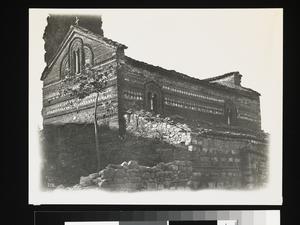 Detail of the east façade of the church. Further annotation in pencil survives on the back of the photograph. See also photo no. BRF. 02/01/09/010.
