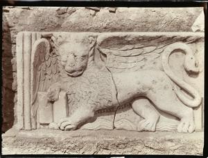 Winged lion of St Mark (the panel crowned the city-gates). Further annotation survives at the back of the photograph.