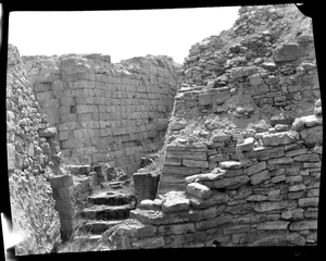 Part of a group of images donated by the Argonaut Camera Club, taken on excursions and cruises in Greece and Asia Minor. The original description in the SPHS negative register reads: "Troy: the great tower & the later stairway".