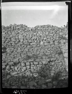Part of a group of images donated by the Argonaut Camera Club, taken on excursions and cruises in Greece and Asia Minor. The original description in the SPHS register reads: "Troy: (N.E angle Tower) junction of Mycenean wall R. with later GR. Wall. L.".