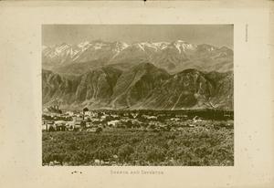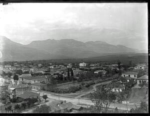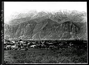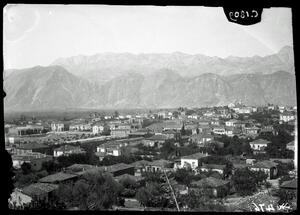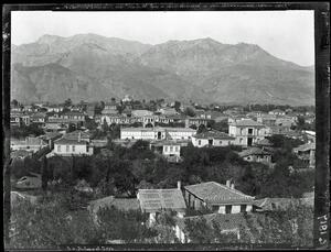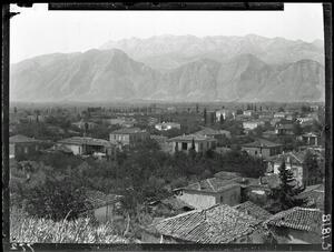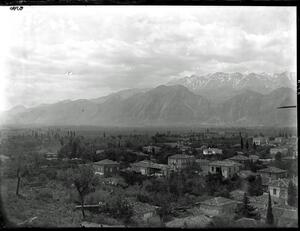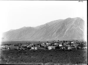 Part of the collection of images, 1906-1910, of the British School at Athens excavations at Sparta, Laconia. The original description in the SPHS register reads: "Sparta: general view with Taygetos".
