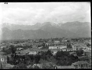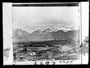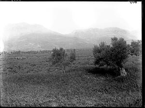 Part of the collection of images, 1906-1910, of the British School at Athens excavations at Sparta, Laconia. The original description in the SPHS register reads: "Sparta: the Taygetos range seen from acropolis".