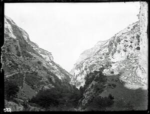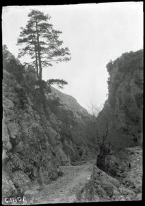 The original description in the SPHS register reads: "Mr. Atchley's numbering: 432. Laconia. Langada pass looking back to entrance".