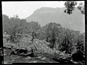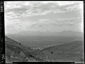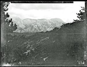 Part of the collection of images, 1906-1910, of the British School at Athens excavations at Sparta, Laconia. The original description in the SPHS register reads: "Sparta: Taygetos from Acropolis of Sparta".