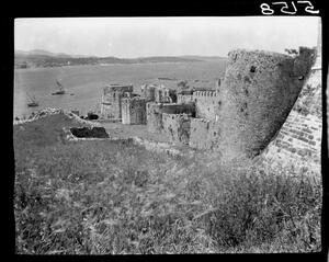 Part of a set of images taken by F.W. Hasluck in 1908 when he visited Aenos, Phocaea, Lemnos and Mytilene to document Frankish monuments. The original description in the SPHS register reads:"Lemnos: harbour & castle".
