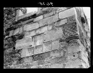 Part of a set of images taken by F.W. Hasluck in 1908 when he visited Aenos, Phocaea, Lemnos and Mytilene to document Frankish monuments. The original description in the SPHS register reads: "Mytilene: Heraldry in castle: BSA xv 263, fig. 13".