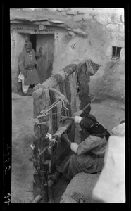 Part of a collection of images from Halliday's travel to Asia Minior in 1911 with Dawkins. The original description in the SPHS register reads: "Tshukuri (Tshukur yurt). Simple beam loom".
