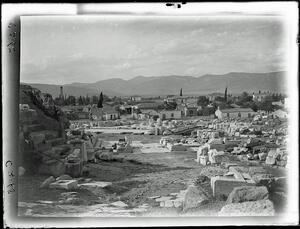The original description in the SPHS register reads: "Eleusis: general view looking S. across stoa of Philo".