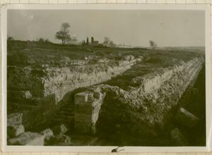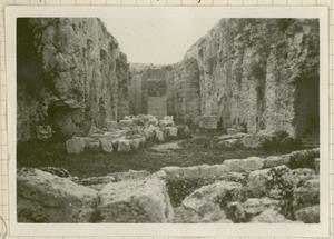 Part of a group of images donated by the Argonaut Camera Club, taken on excursions and cruises in Greece and Asia Minor. The original description in the SPHS negative register reads: "Syracuse: one of the quarries (not that in which the Athenians were imprisoned)".