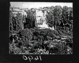 Part of a group of images donated by the Argonaut Camera Club, taken on excursions and cruises in Greece and Asia Minor. The original description in the SPHS register reads: "Syracuse: the quarries (Latomia)".