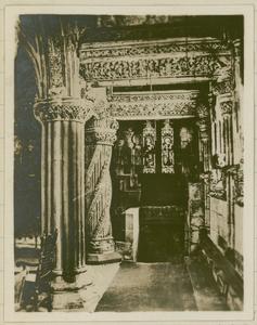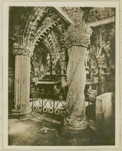 The page in the travel log this photograph is pasted onto is labelled, in the upper right corner, 'Melrose Abbey, Edinburgh', but the photo is of the inside of Rosslyn Chapel, Roslin, Scotland
