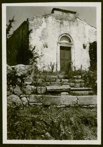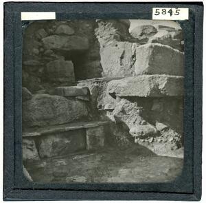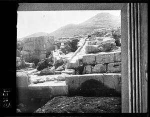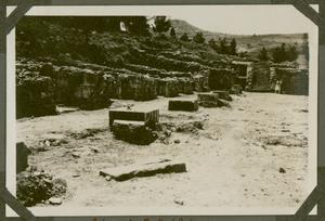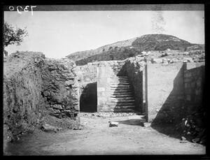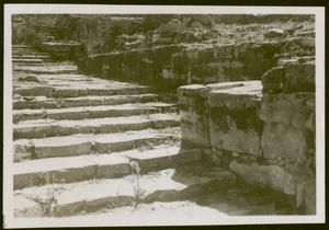 Part of a collection of images from Halliday's travels around Crete following the excavations at Kamares Cave in 1913. The original description in the SPHS register reads: "Hagia Triada: the staircase".