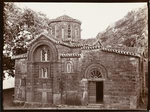 East façade (detail of the apse). Further annotation in pencil survives at the back of the photograph.