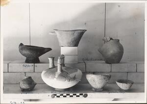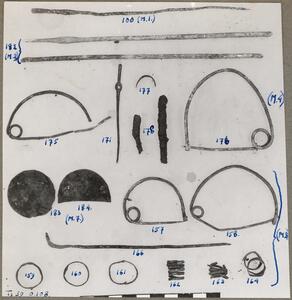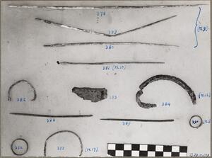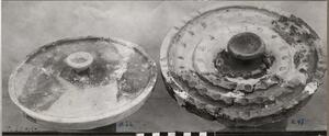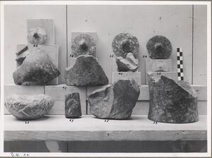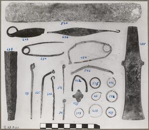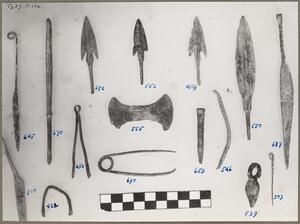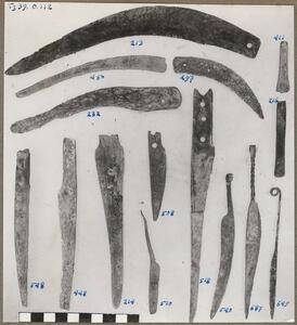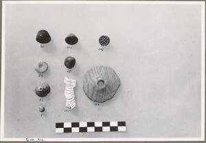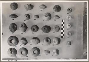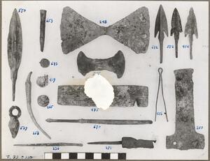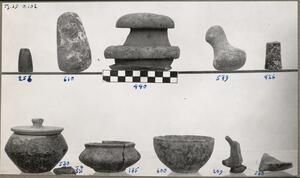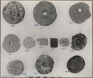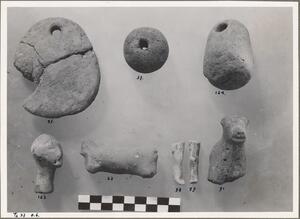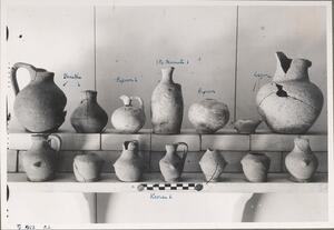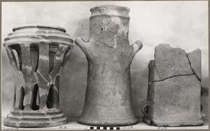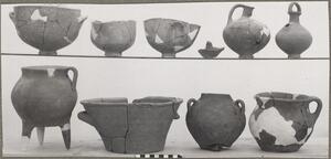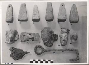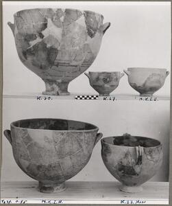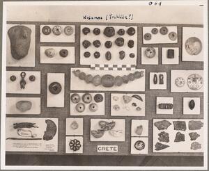 Includes pieces from Kastellos N17, Kastellos F.3. (110-180), Skaphidhia, 20 m West of Trapeza and Tzermiadha Village. Some pieces of this photograph were published in ‘Excavations in the Plain of Lasithi II’ by H. W. Pendlebury, J. D. S. Pendlebury and M. B. Money-Coutts, in BSA (38), pp. 1-56.