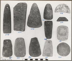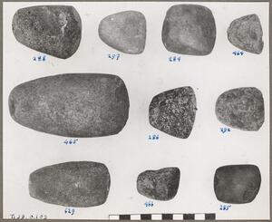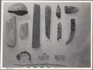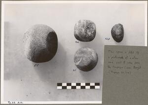 Written on the lower corner of the photograph: “This space is filled by a photograph of a stone axe, said to come from the Trapeza Cave. [Bought?] (Trapeza. St. 110)”