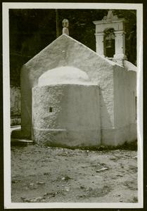 [PEN/7/2/6/86], Photograph of Tristram Hillier sitting in a car with his leg bandaged, captioned “The “Resident”” at “Agios Georgios Soulinaris” [Selinári], Crete, 21 Apr 1934