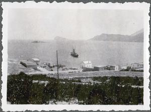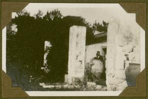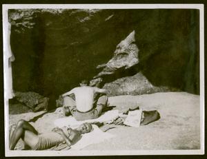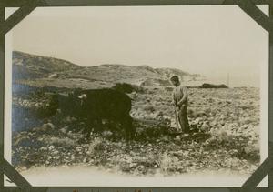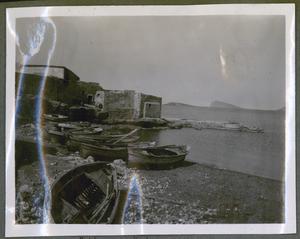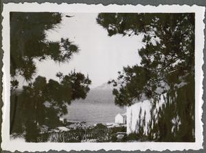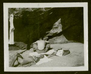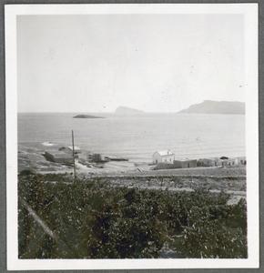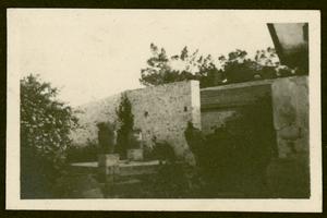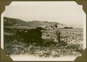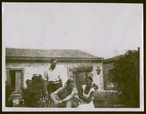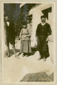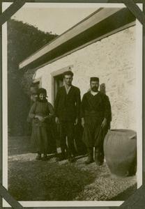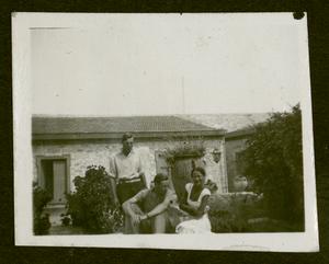 [PEN/7/2/4/76], Photograph of Nikolaos Saradakis, his wife, and son-in-law George at [Richard] Seager’s house, Pachyammos [Pacheía Ámmos], Crete, [14-21 Feb] 1928