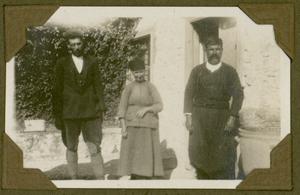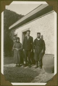Photograph of Nikolaos Saradakis, his wife, and son-in-law George at [Richard] Seager’s house, Pachyammos [Pacheía Ámmos], Crete