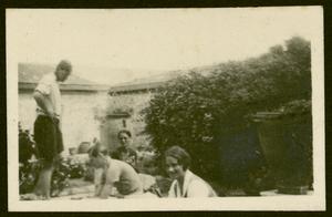 Photograph of John Pendlebury, Joan and Seton Lloyd, and another woman (unidentified), in the garden at Richard Seager’s house in Pakhyammos [Pacheía Ámmos], Crete