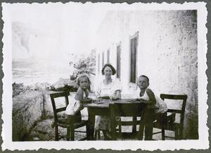 Photograph of Seton and Joan Lloyd, John Pendlebury, and Rosaleen Angas, in the garden at Richard Seager’s house in Pakhyammos [Pacheía Ámmos], Crete