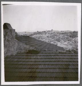 View across roof tops, to landscape beyond.