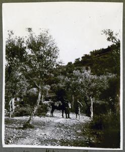 [PEN/7/2/6/510], Photograph of 2 men and a horse standing on the road [one man is John Pendlebury] captioned “Threatening attitude at Tapis” [Tápes], Crete, 1-2 May 1936
