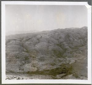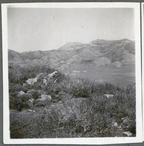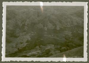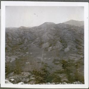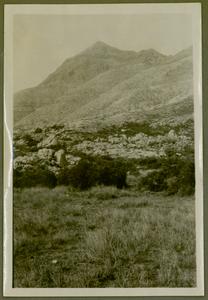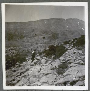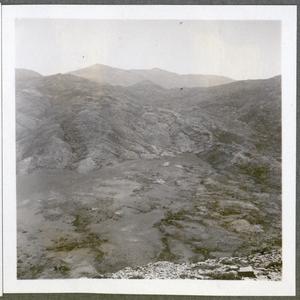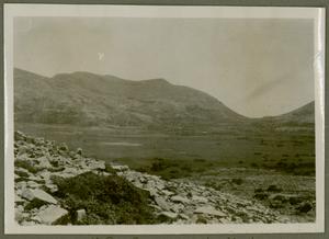 [PEN/7/2/6/326], Photograph of “The West End of the Nidha Plain [Nida Plateau], Cave [Ideon Andron] entrance is immediately above head of Kosta on far side of plain”, Crete, 12-13 Jun 1935