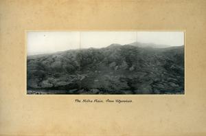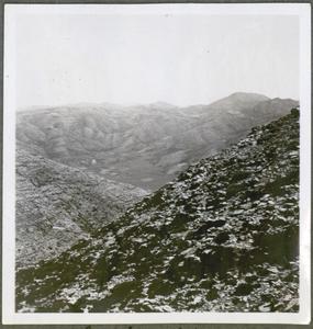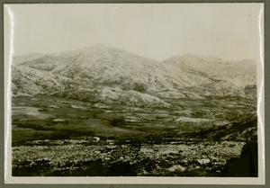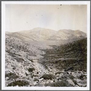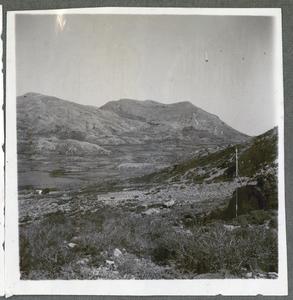 Photograph of “The West End of the Nidha Plain [Nida Plateau], Cave [Ideon Andron] entrance is immediately above head of Kosta on far side of plain”, Crete