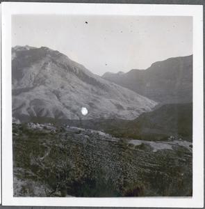 [PEN/7/3/5/6], Mounted panorama (2 photographs stuck together) of “Mount Asidherotas and part of Kedhros from Kato Sakhtouria” [Sidhérotas and part of Kédhros Óros from Káto Saktoúria], Crete, [19 Jul 1937]